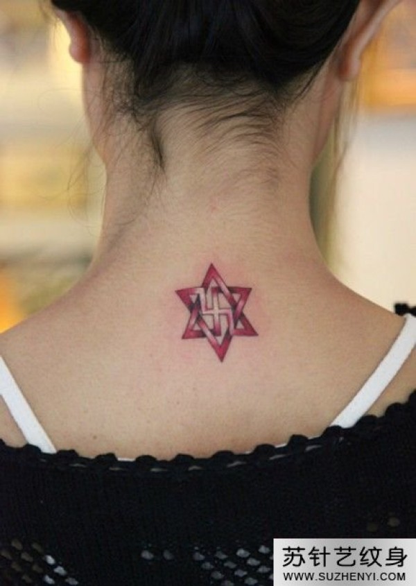 六角芒星后颈纹身_个性纹身图案大全_纹身图吧