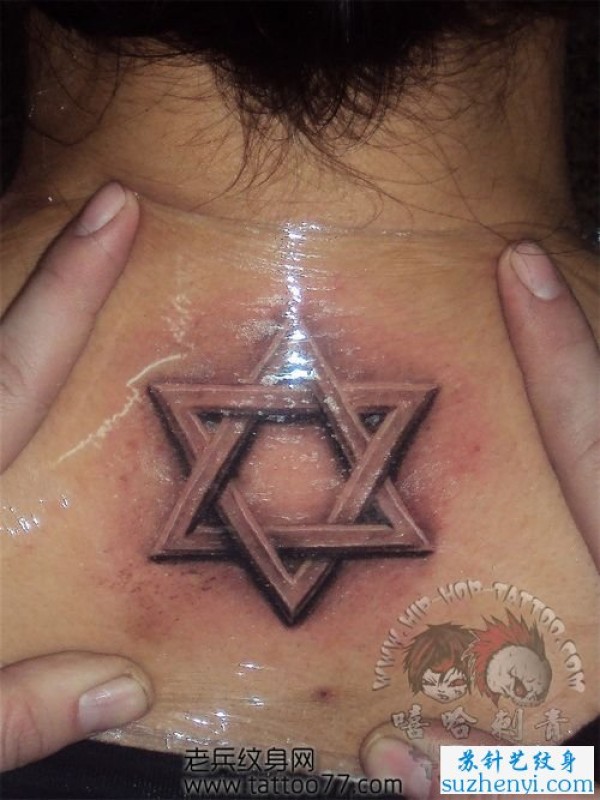颈部立体六芒星纹身_个性纹身图案大全_纹身图吧