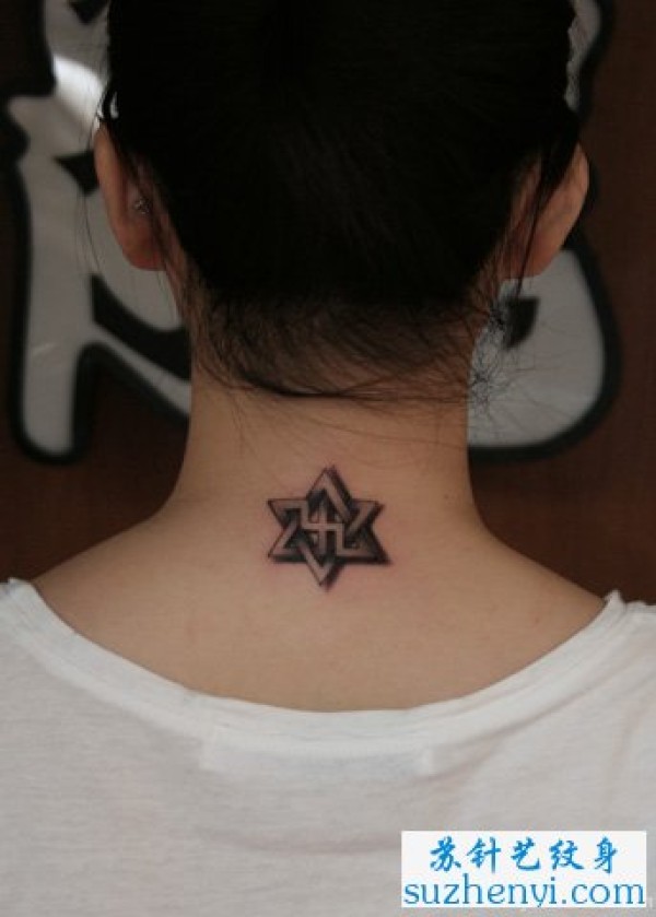 后颈部六芒星纹身_个性纹身图案大全_纹身图吧