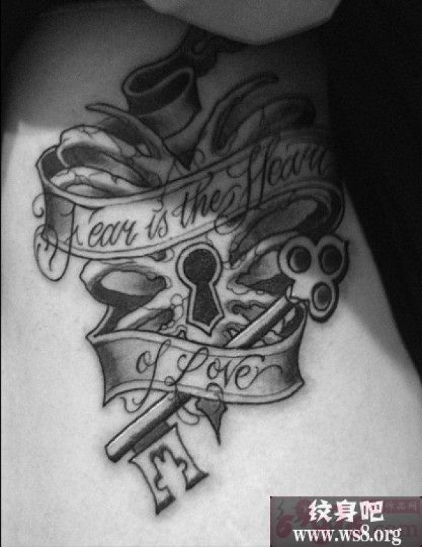 钥匙与锁黑白纹身_黑白纹身图案大全_纹身图吧