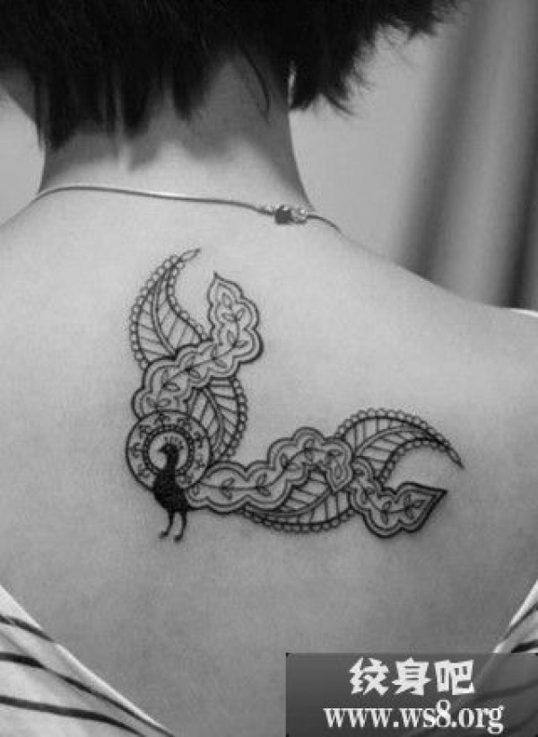 女人背上黑白凤凰纹身_黑白纹身图案大全_纹身图吧