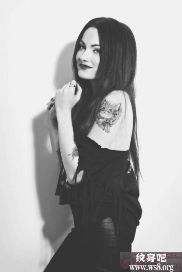 美女手臂黑白猫头纹身_黑白纹身图案大全_纹身图吧