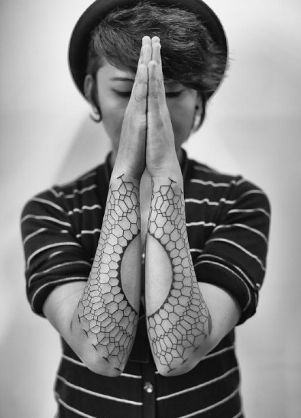 25款男性黑色手臂线条纹身点刺技巧半甲纹身图案