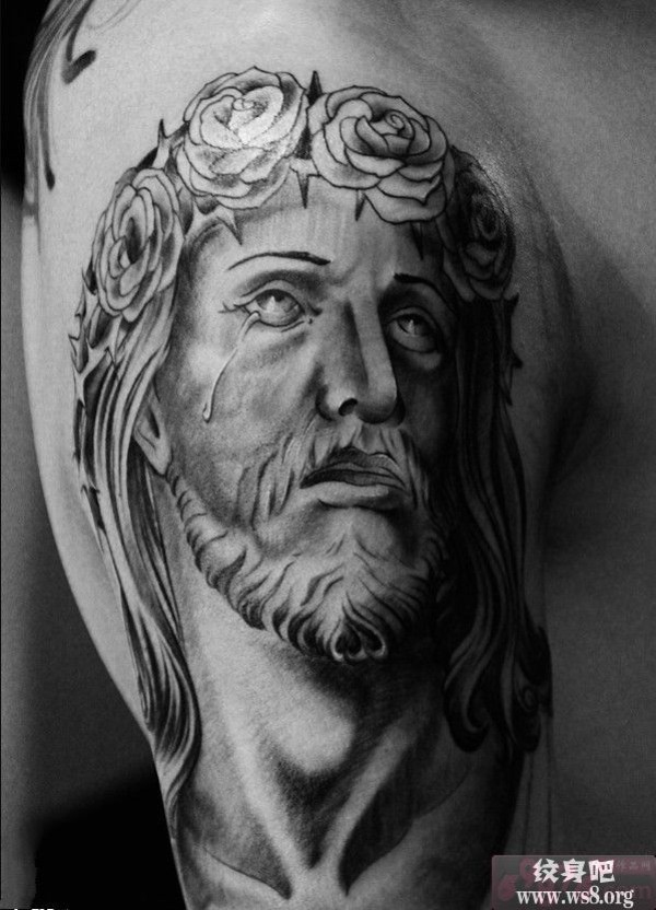 落泪耶稣头像黑白纹身_黑白纹身图案大全_纹身图吧