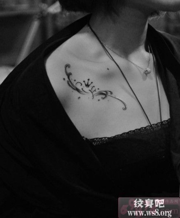 锁骨创意皇冠黑白纹身_黑白纹身图案大全_纹身图吧