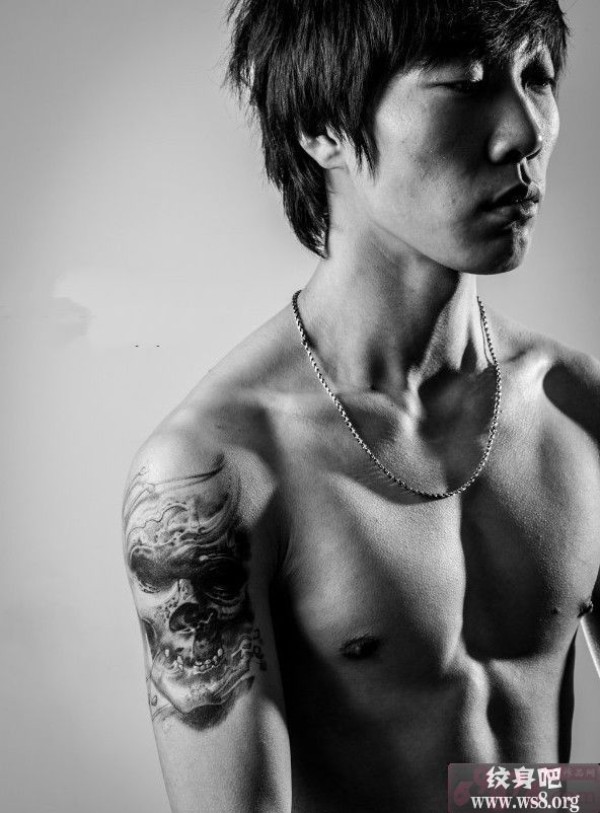 潮男手臂黑白骷髅纹身_黑白纹身图案大全_纹身图吧
