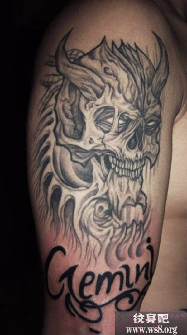 邪恶魔鬼手臂黑白纹身_黑白纹身图案大全_纹身图吧
