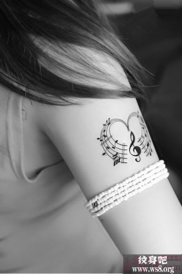 唯美黑白心形音符纹身_黑白纹身图案大全_纹身图吧