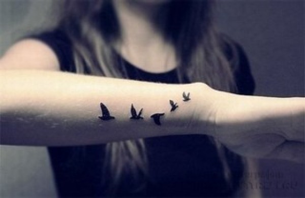 女性手臂海鸥黑白刺青_黑白纹身图案大全_纹身图吧