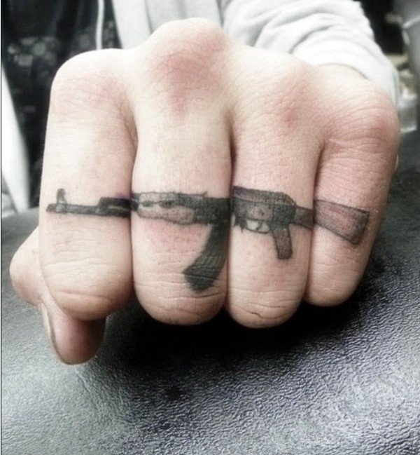 男人手指独特黑白布枪创意刺青_黑白纹身图案大全_纹身图吧