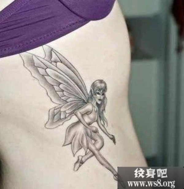 腰部黑白色调精灵纹身图案_黑白纹身图案大全_纹身图吧