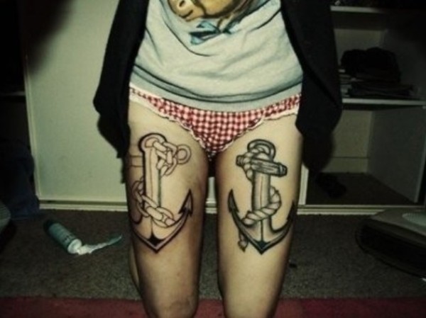 女性腿部黑白锚欧美独特刺青_黑白纹身图案大全_纹身图吧