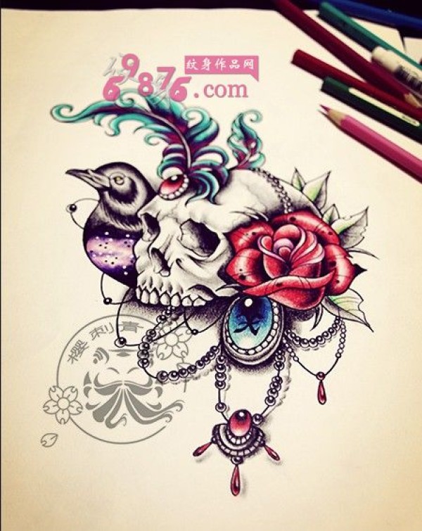 欧美骷髅复古纹身手稿_黑白纹身图案大全_纹身图吧