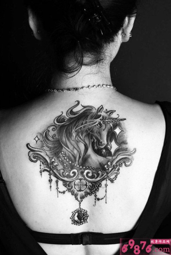 女生后背霸气黑白独角兽纹身_黑白纹身图案大全_纹身图吧