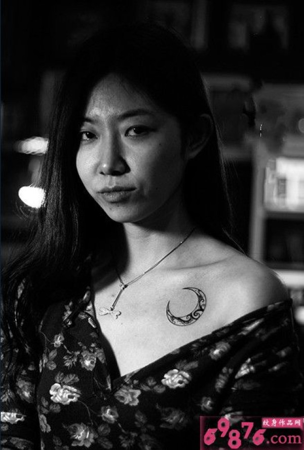 美女锁骨月亮图腾纹身_黑白纹身图案大全_纹身图吧