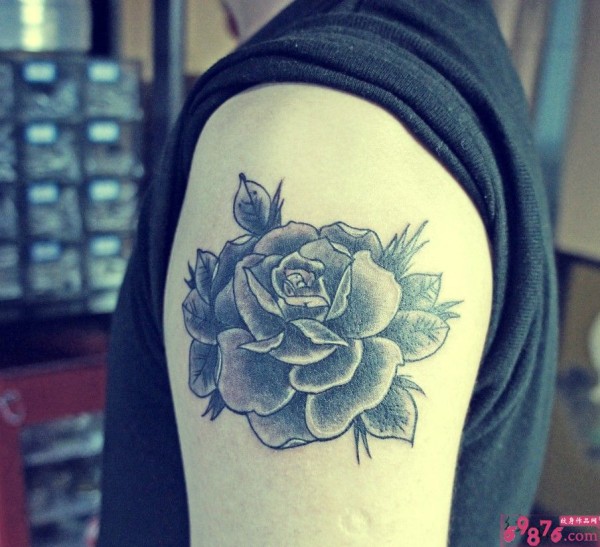 黑白玫瑰手臂刺青_黑白纹身图案大全_纹身图吧