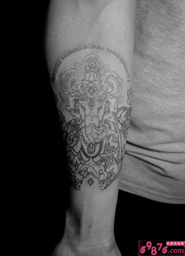 小臂黑白象神纹身图案_黑白纹身图案大全_纹身图吧