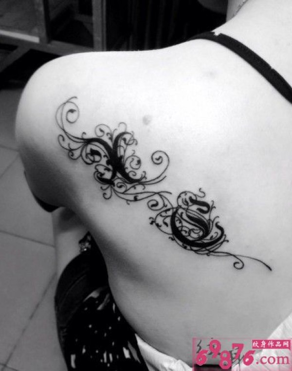 女孩子背部黑白蝴蝶结纹身图案_黑白纹身图案大全_纹身图吧
