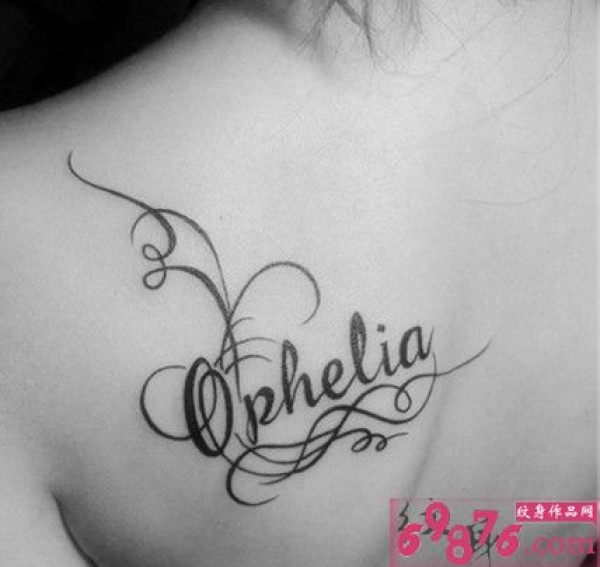 女生后肩黑白创意花藤英文_黑白纹身图案大全_纹身图吧