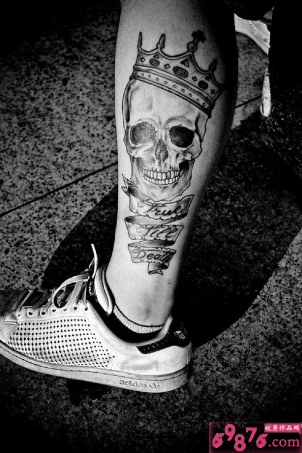 小腿黑白骷髅头纹身图案_黑白纹身图案大全_纹身图吧