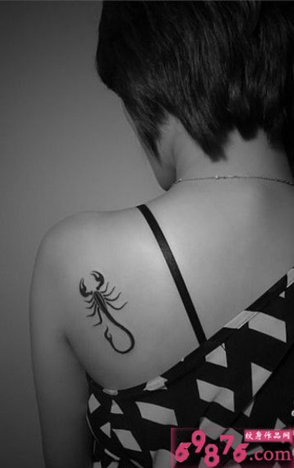 女生肩部黑白蝎子图腾_黑白纹身图案大全_纹身图吧