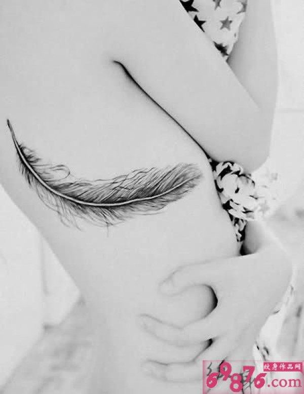 侧腰羽毛纹身图片_黑白纹身图案大全_纹身图吧
