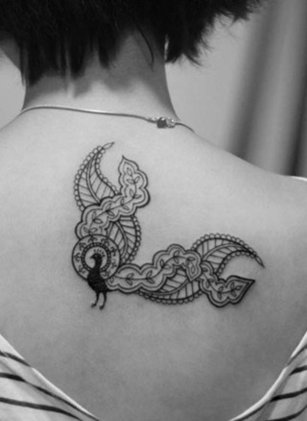 女人背上黑白凤凰纹身_黑白纹身图案大全_纹身图吧