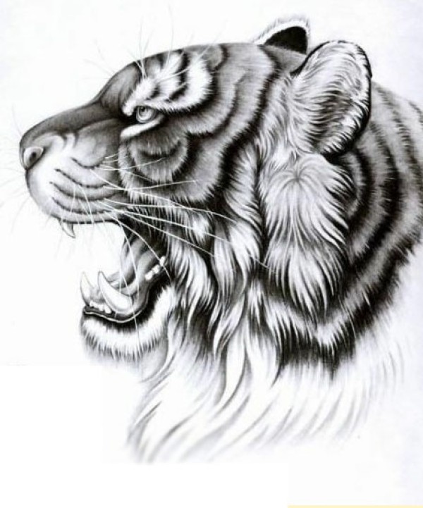 十分帅气的虎头图案纹身手稿_黑白纹身图案大全_纹身图吧