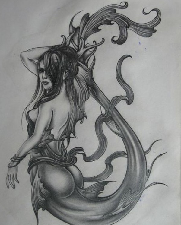 另类的美人鱼图案纹身手稿_黑白纹身图案大全_纹身图吧