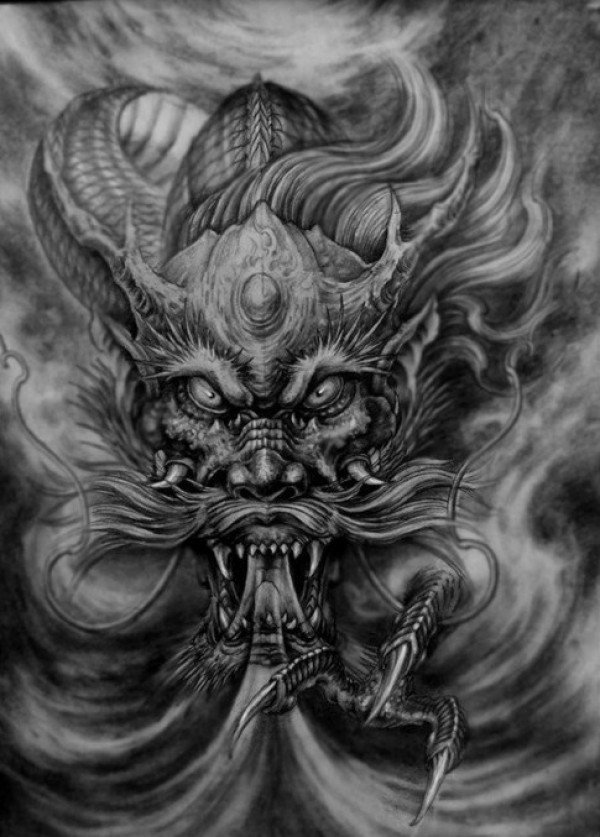 武汉纹身店黑白关公战龙纹身图案图片大全_黑白纹身图案大全_纹身图吧