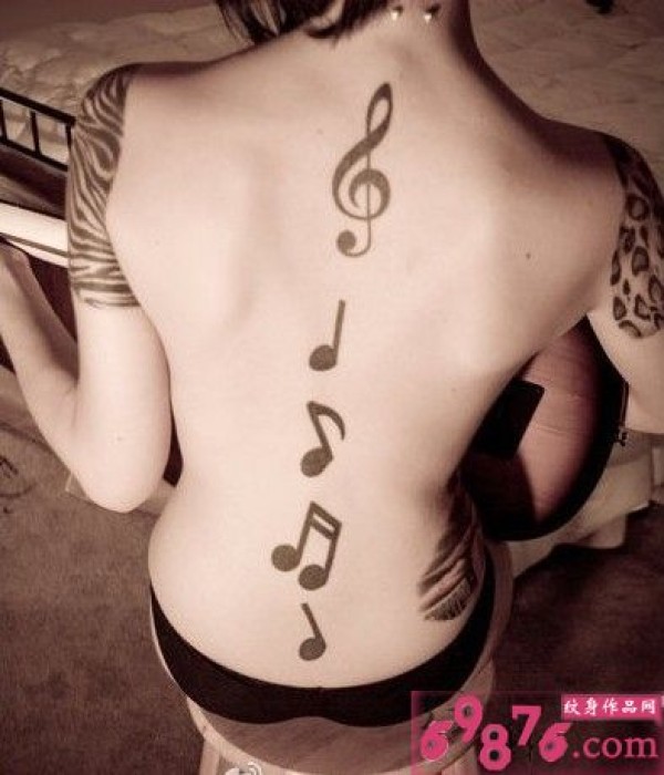 女生背上个性黑白音符纹身_黑白纹身图案大全_纹身图吧