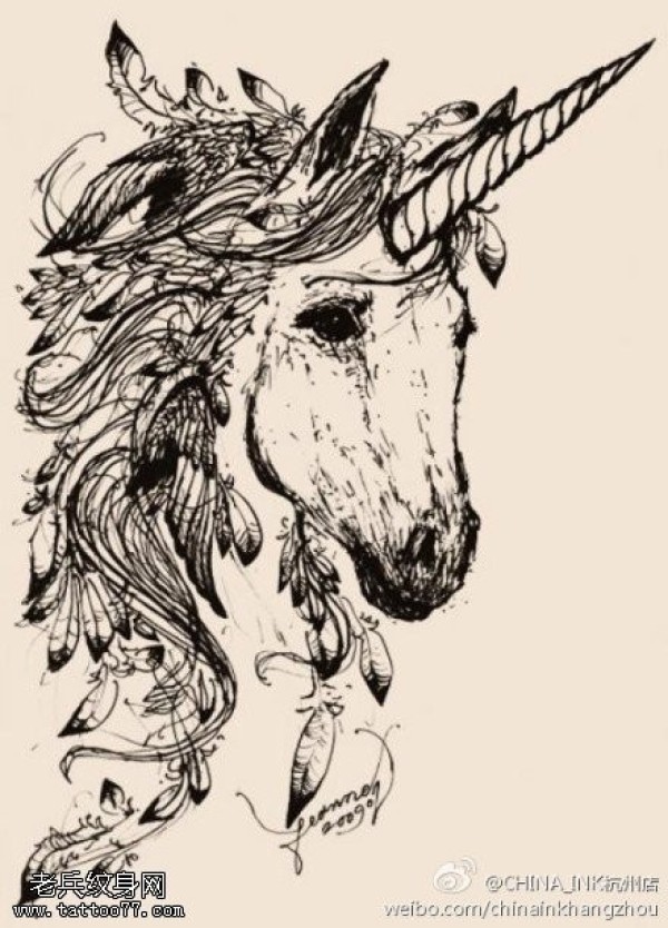 一款黑灰独角兽纹身图案_黑白纹身图案大全_纹身图吧