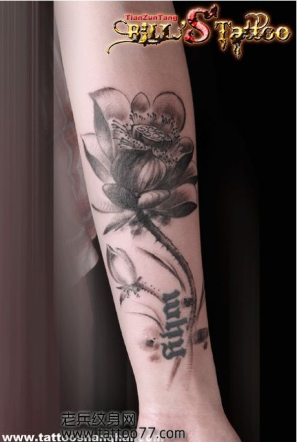 美女手臂黑白莲花纹身图案_黑白纹身图案大全_纹身图吧
