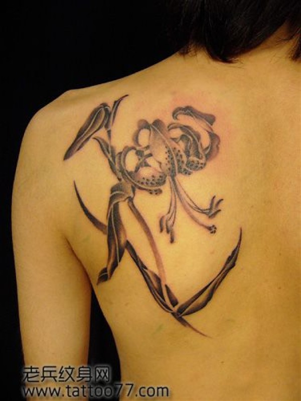 肩部黑白百合花纹身图案_黑白纹身图案大全_纹身图吧