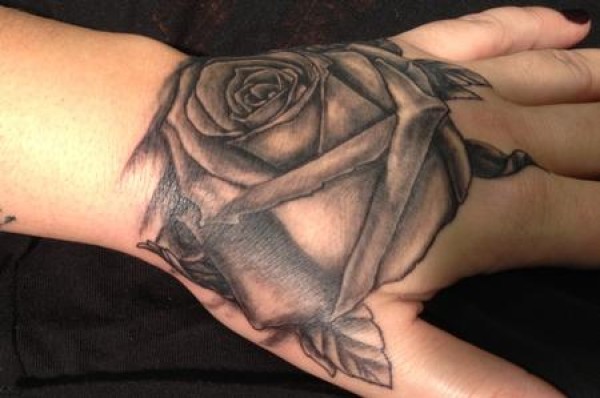 手部黑白玫瑰花纹身图片大全_黑白纹身图案大全_纹身图吧