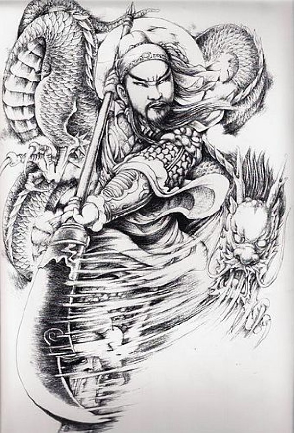 武汉纹身店黑白关公战龙纹身图案图片大全_黑白纹身图案大全_纹身图吧