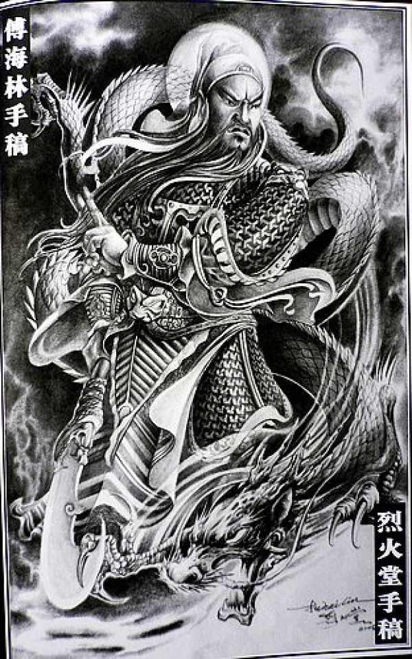 武汉纹身店黑白关公战龙纹身图案图片大全_黑白纹身图案大全_纹身图吧