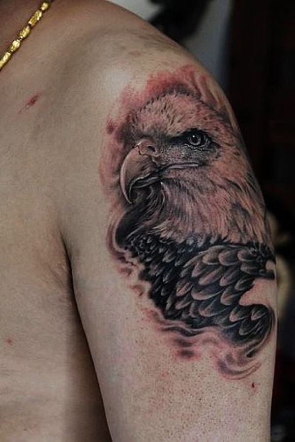 湖北宜昌文身店男人手臂黑白老鹰纹身图案图_黑白纹身图案大全_纹身图吧