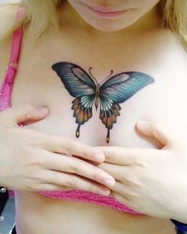 令人激动不已的胸部蝴蝶纹身图_蝴蝶纹身图案大全_纹身图吧