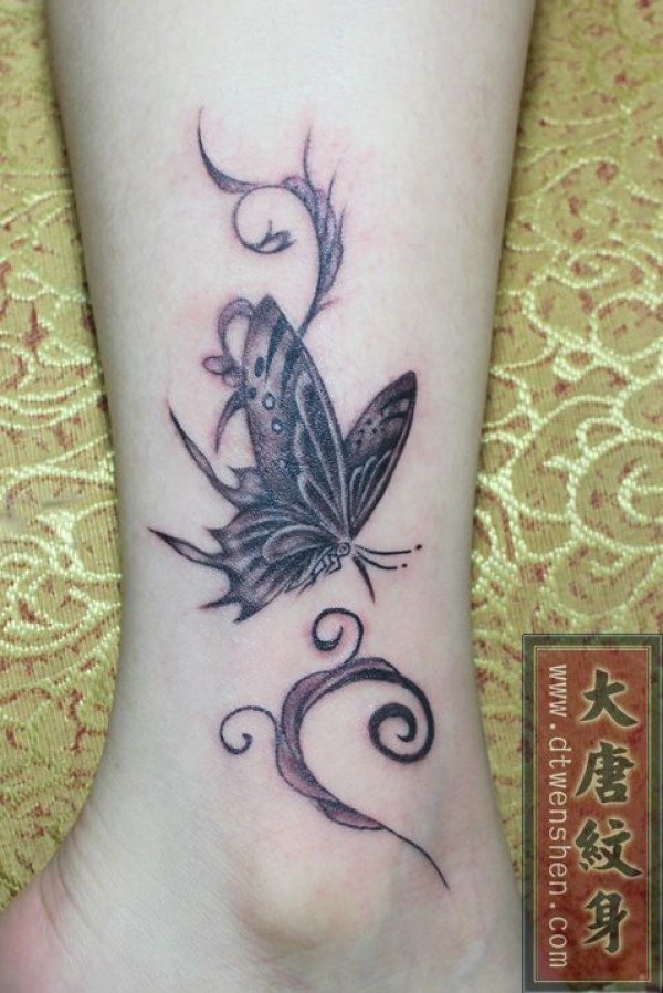 脚部唯美蝴蝶纹身图片_蝴蝶纹身图案大全_纹身图吧