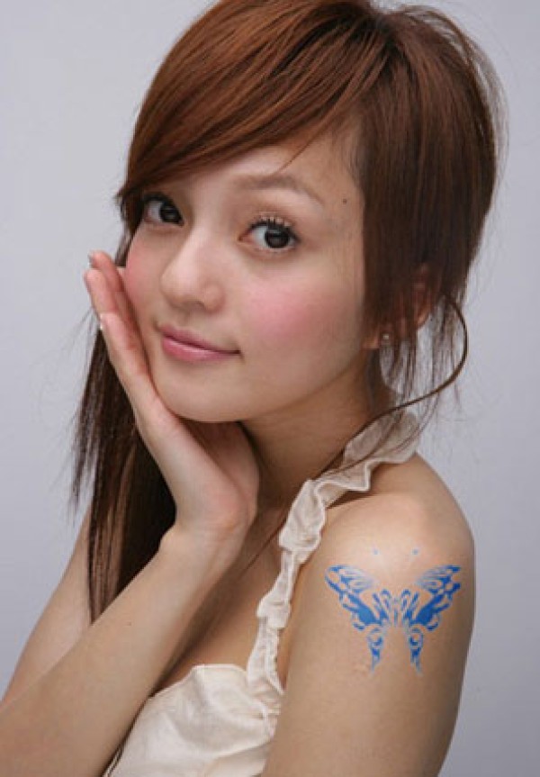 张韶涵手臂漂亮蝴蝶纹身图片_蝴蝶纹身图案大全_纹身图吧