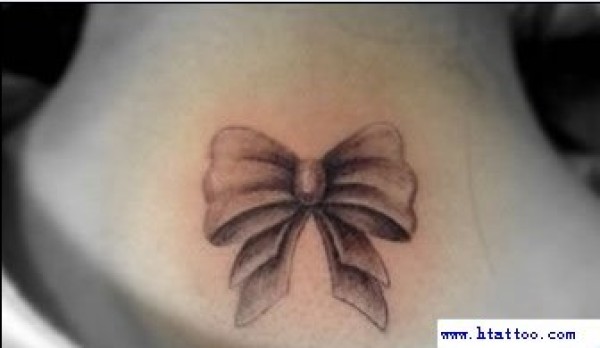 女生颈部后面的漂亮蝴蝶结图片_蝴蝶纹身图案大全_纹身图吧