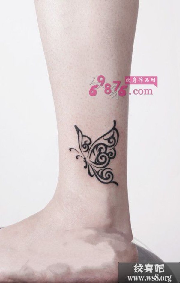 清新蝴蝶脚踝时尚纹身图案_蝴蝶纹身图案大全_纹身图吧