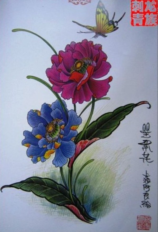 彩绘鲜花与蝴蝶素材欣赏_蝴蝶纹身图案大全_纹身图吧
