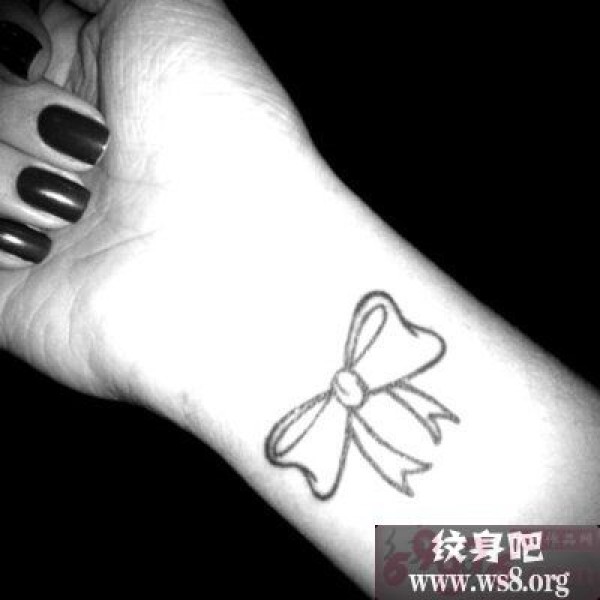 女生手臂黑白蝴蝶结纹身_蝴蝶纹身图案大全_纹身图吧