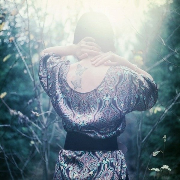 女生背部蝴蝶唯美意境纹身_蝴蝶纹身图案大全_纹身图吧