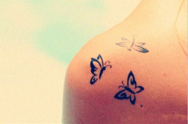 女生肩膀黑色蝴蝶唯美意境纹身图案图片_蝴蝶纹身图案大全_纹身图吧
