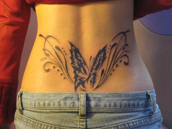女子腰部蝴蝶刺青_蝴蝶纹身图案大全_纹身图吧