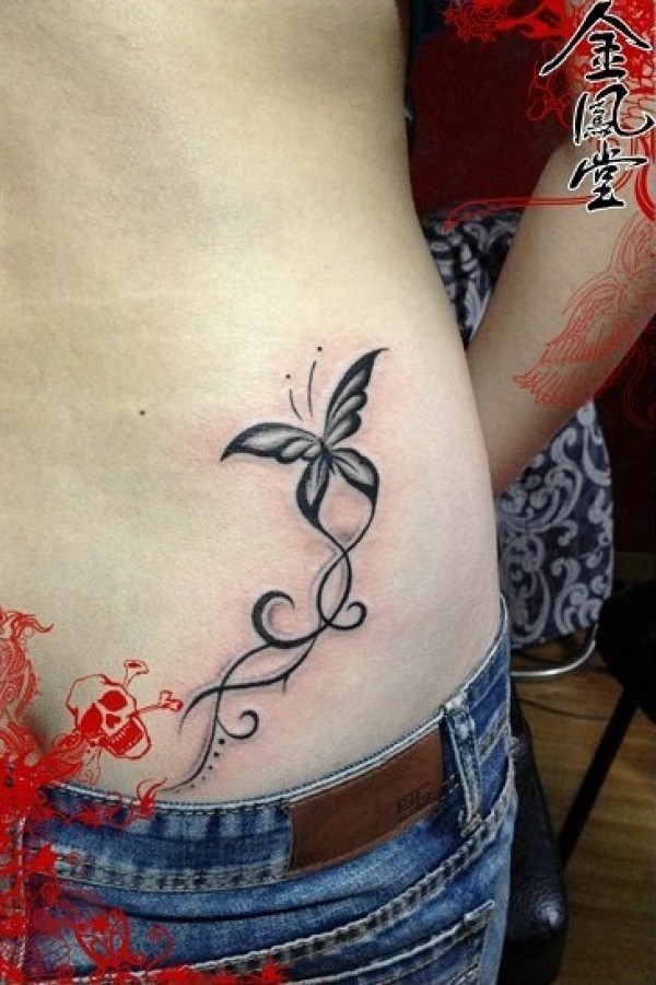 腰部彩色蝴蝶纹身_蝴蝶纹身图案大全_纹身图吧