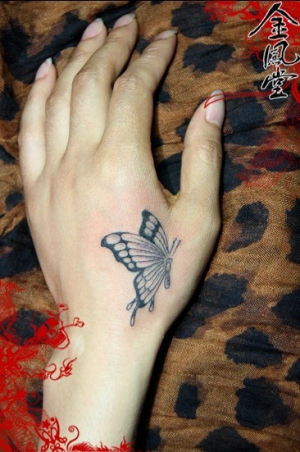 手背彩色蝴蝶纹身_蝴蝶纹身图案大全_纹身图吧
